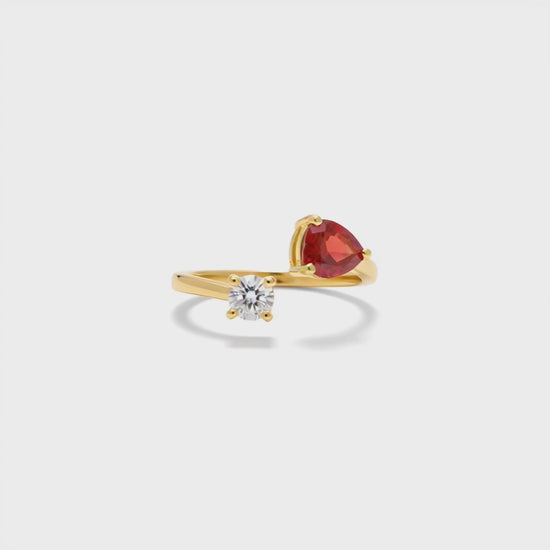 Anillo Toi&Moi realizado en plata de ley, con circonitas blanca y roja que aportan brillo sutil.